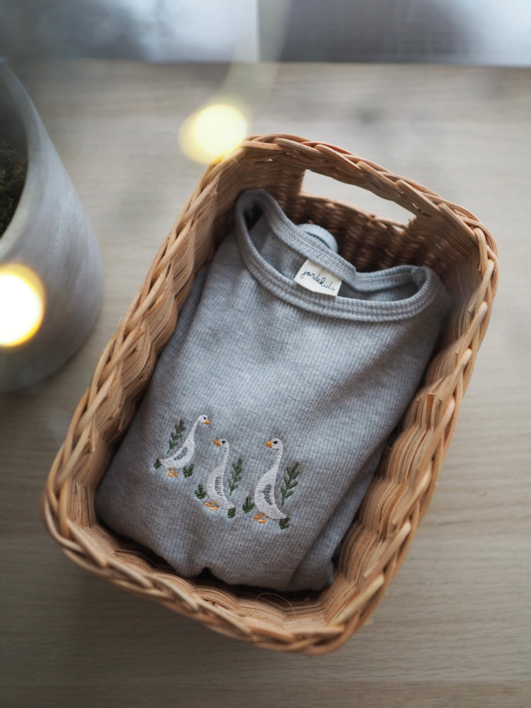 Die dezente Gänse-Stickerei verleiht dem Shirt einen natürlichen, zeitlosen Look – perfekt kombinierbar zu jedem Outfit.