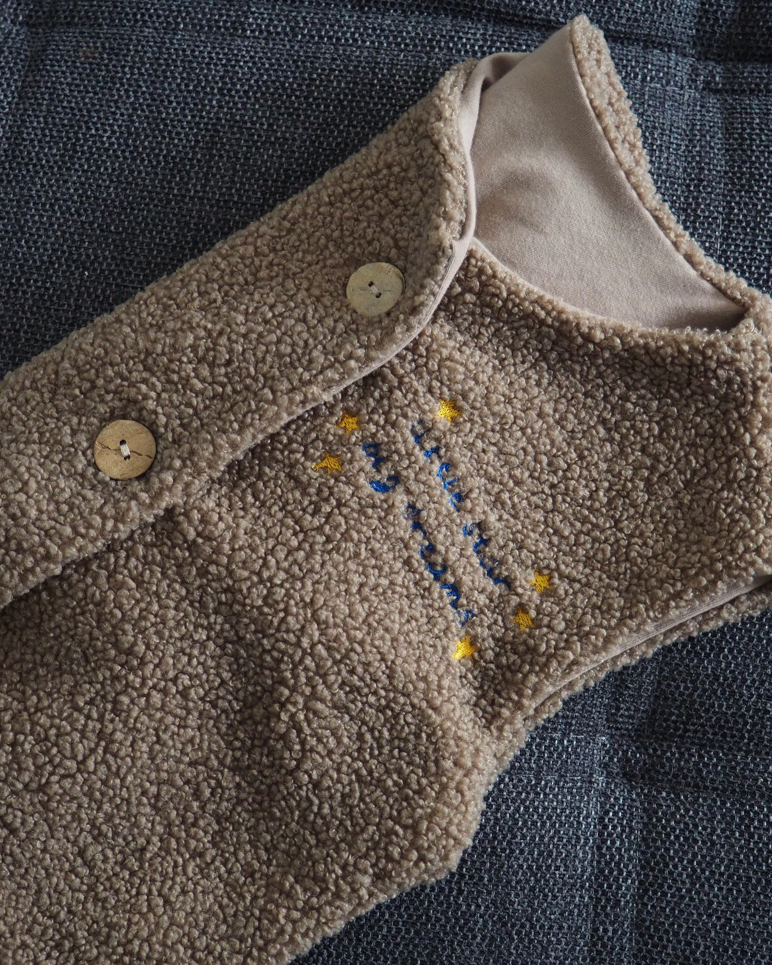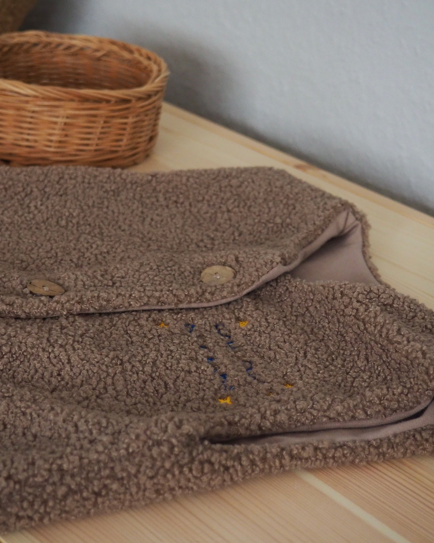 Außen Teddy Boucle und innen ein Jersey in Bio Qualität.