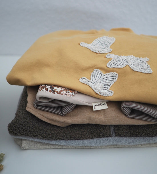 Bei Jordekids steckt in jedem Teil ganz viel Herz und echte Handarbeit. Ich entwerfe, nähe, sticke, fotografiere, verpacke und versende alles selbst. So entstehen kleine Kollektionen mit Charakter. Persönlich, hochwertig und mit Liebe gemacht.